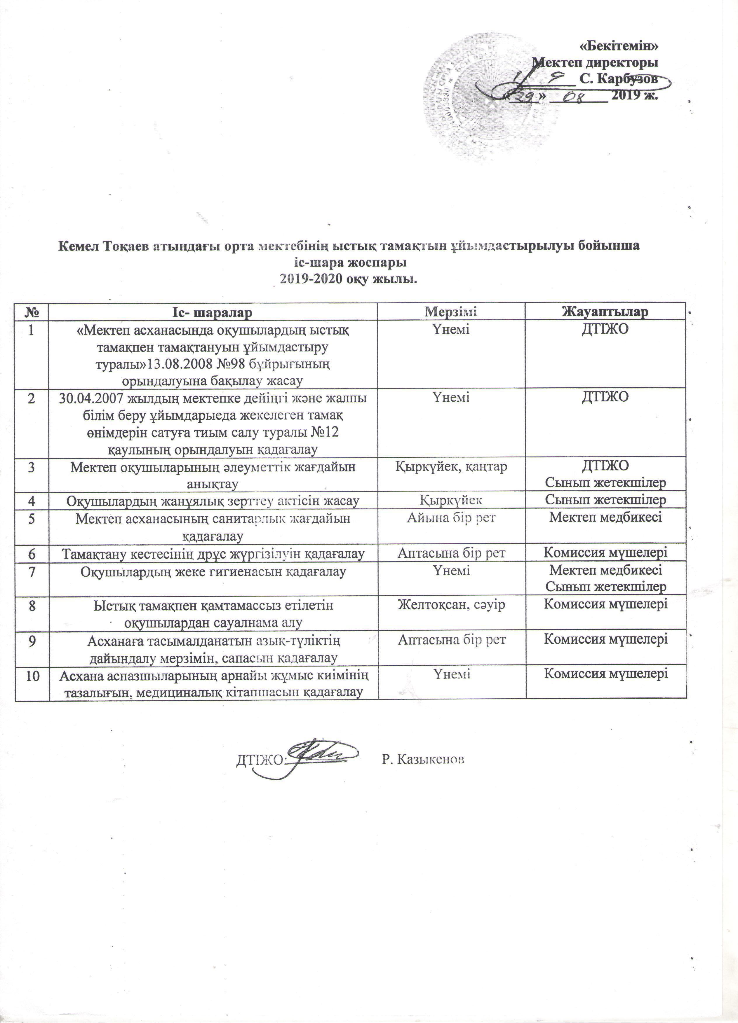 02 сентябрь 2019 0 1 2 3 4 5 к.Тоқаев атындағы орта мектебінің ыстық тамақтың ұйымдастырылуы бойынша іс-шара жоспары