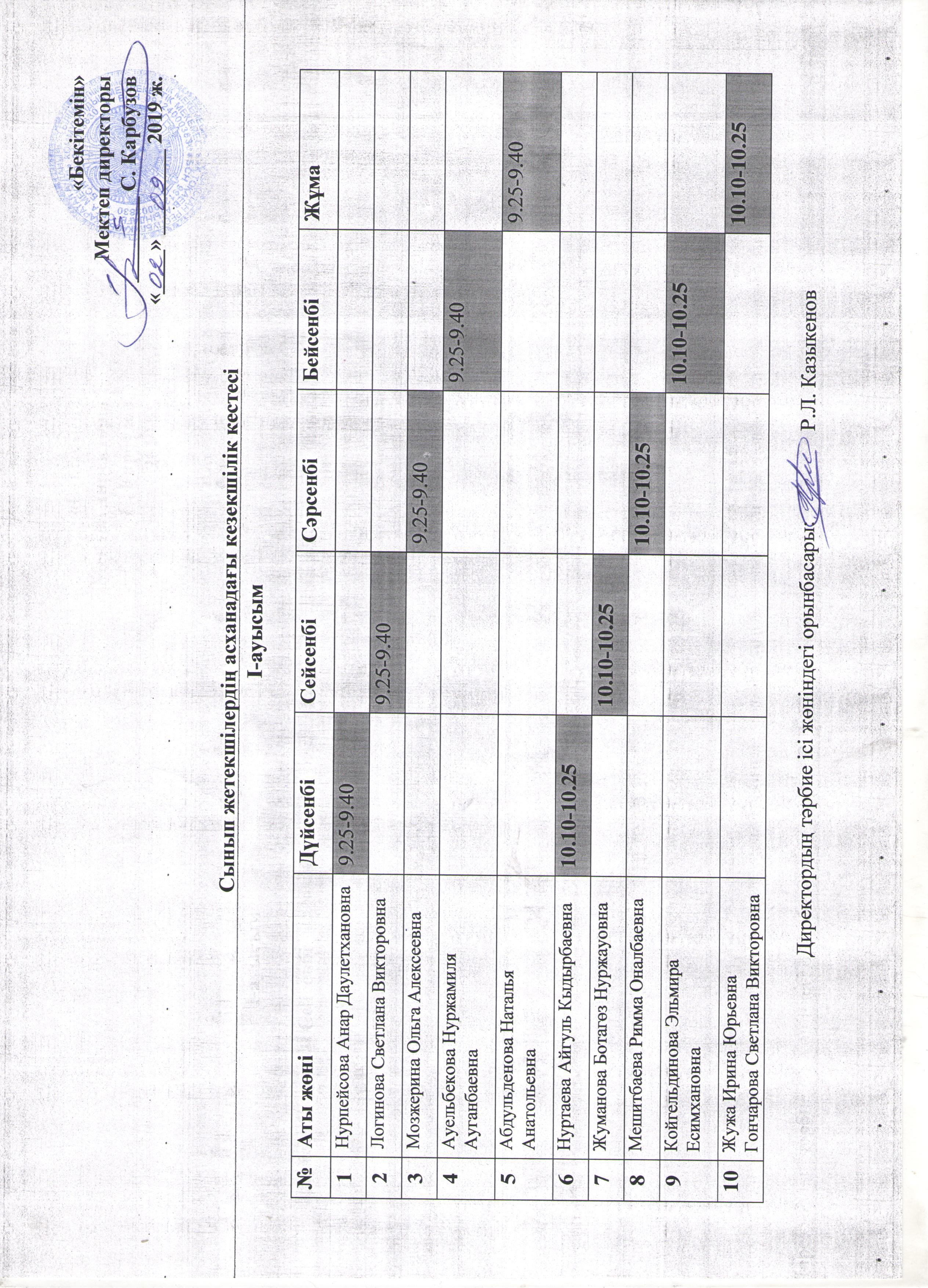 Сынып жетекшілердің асханадағы кезекшілік кестесі І-ауысым » К.Тоқаев атындағы орта мектеп
