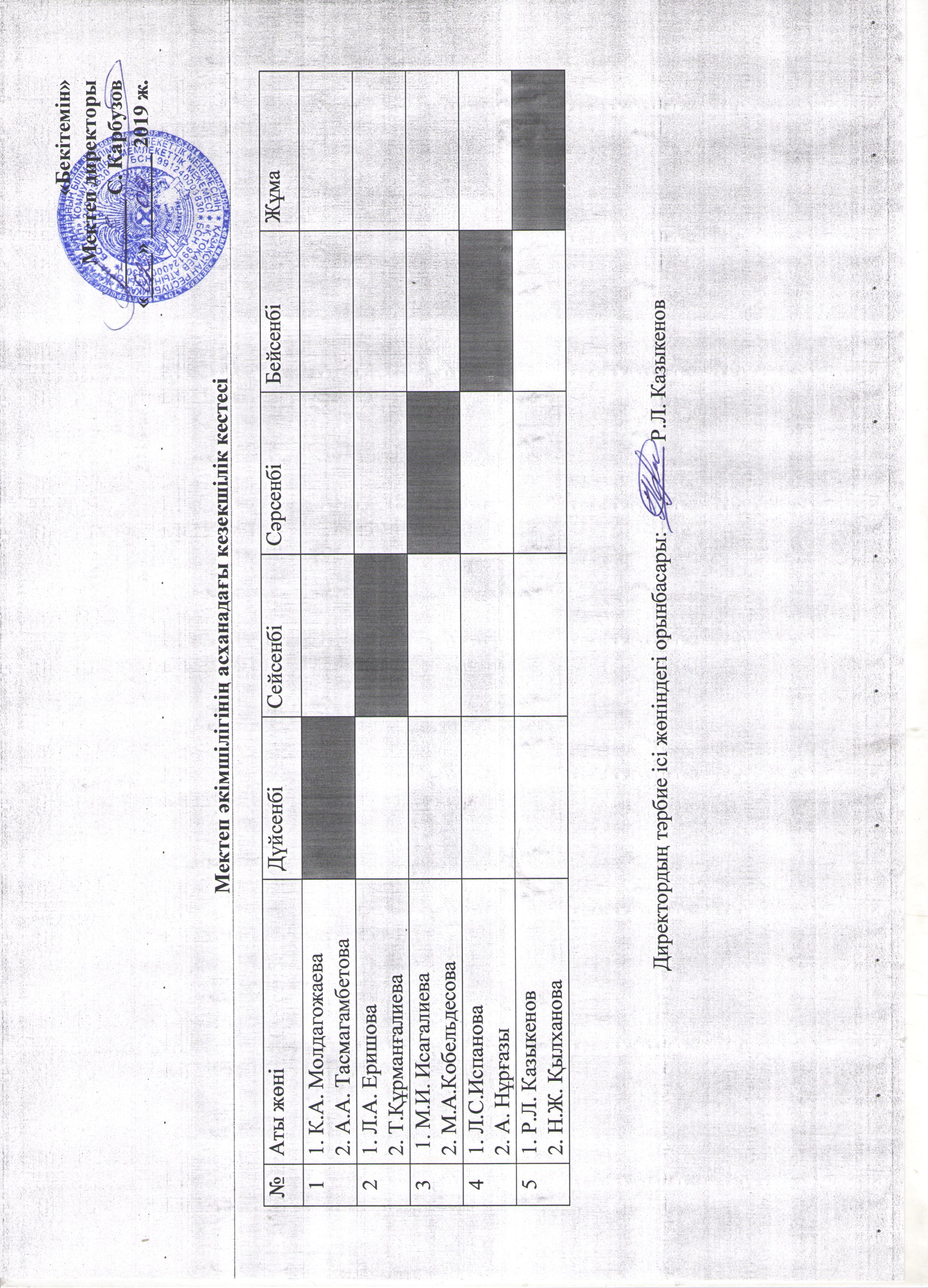 Мектеп әкімшілігінің асханадағы кезекшілік кестесі
